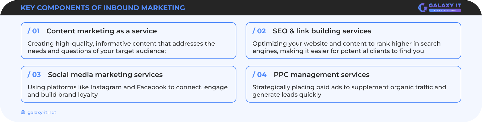 At Galaxy IT Inc., we specialize in tailored inbound marketing solutions. Our approach combines seo and digital services, social media campaigns, content marketing and data-driven analytics to deliver measurable results. Our team ensures your business reaches the right audience.