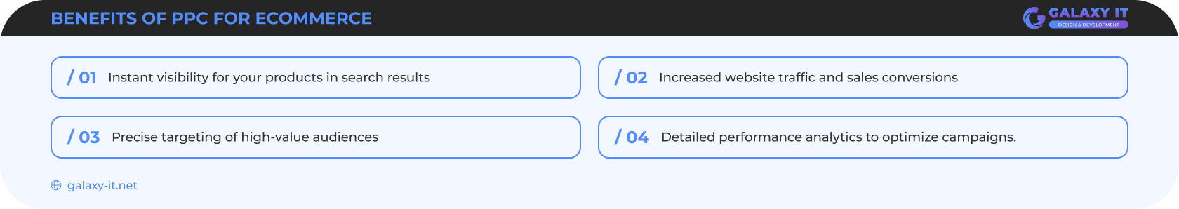 In today’s fast-paced digital landscape, advertising an online store effectively is crucial to staying competitive. Businesses that leverage services enjoy immediate visibility, targeted traffic and measurable results. With the right strategy, your online shop can see significant growth in conversions and revenue. Galaxy IT Inc. offers expert management to help you maximize your sales and achieve ecommerce success.